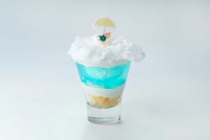 水色のゼリーに雲を浮かべたような「わた雲パフェ」はSNS映えもばっちりです。