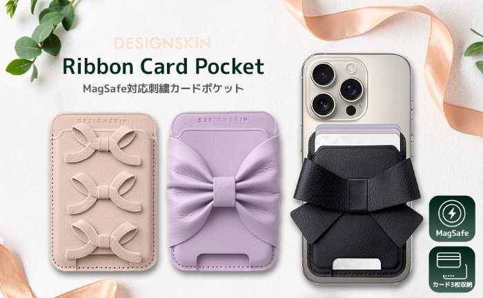 DESIGN SKINの「MagSafe対応リボンカードポケット」は、そんな女性の願いを叶える逸品です。