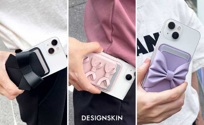 スマホもファッションの一部にしたいあなたへ♡韓国発DESIGN SKINから、フェミニンな魅力たっぷりの「MagSafe対応リボンカードポケット」が新登場。立体的なリボンモチーフが目を引き、毎日のコーディネートに上品なアクセントを添えてくれます。機能性も抜群で、ICカードのタッチやカード収納がこれひとつでOK。おしゃれと実用性を両立した、今注目のアイテムです♪