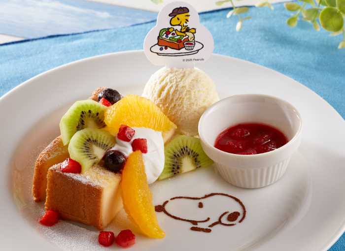 「スヌーピーとウッドストックのフルーツフレンチトースト 〜ホットでクール!?〜」では、ふたりの仲良しコンビがスイーツになって登場!