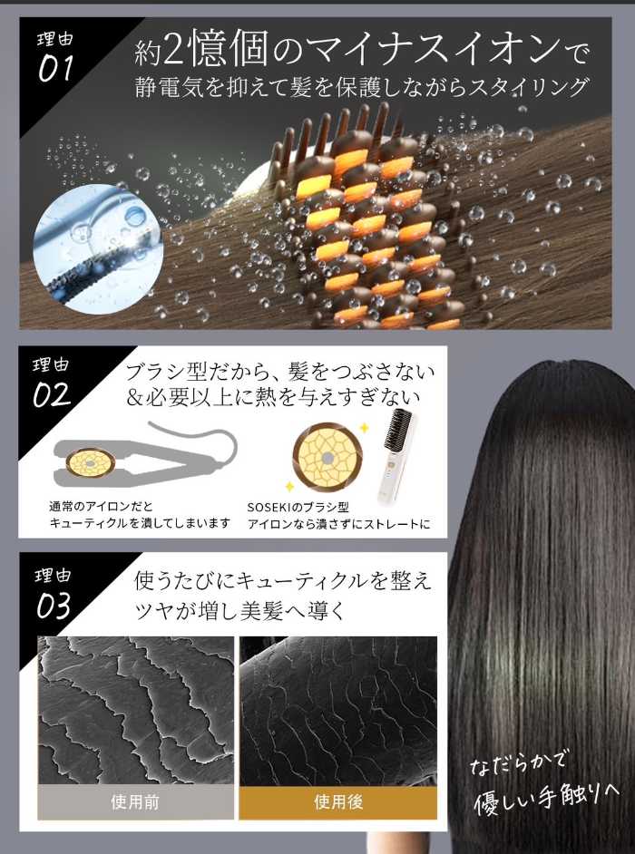 LITGLOSSは約2億個のマイナスイオンで静電気を防ぎ、髪のキューティクルを整えます。