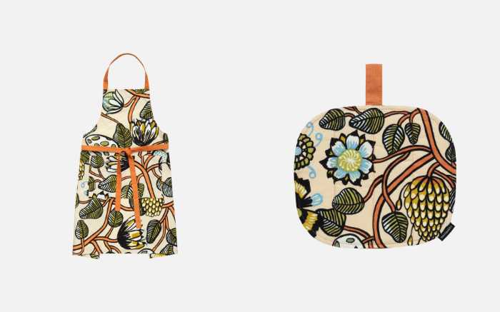 また、クッションカバーやデュベカバーなどのファブリック類、エプロンやポットホルダーといったキッチンアイテムも展開。