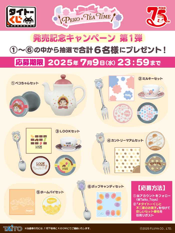 懐かしくて可愛い…不二家のお菓子が、今度はタイトーくじと夢のコラボ♡「タイトーくじ PEKO×TEA TIME」が2025年7月4日(金)より全国で順次発売スタート!大人可愛いティーポットやカップ、紅茶缶風小物入れなど、日常にほんのり甘く彩る癒し雑貨が勢揃いです♪