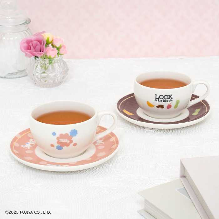 B賞にはLOOKやミルキーをあしらったティーカップ&ソーサーのセットが登場。C~F賞にも、紅茶缶風の小物入れやミニディッシュ、カトラリー、ハンドタオルなど日常使いにぴったりなアイテムが並びます。