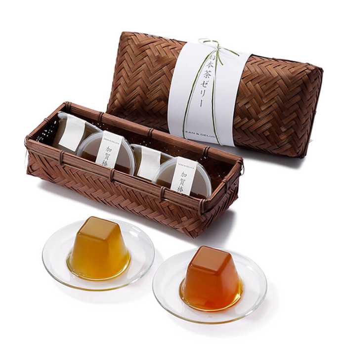 香り豊かな日本茶ゼリーは、煎茶と加賀棒茶の2種の風味を贅沢に楽しめる大人の味わい。