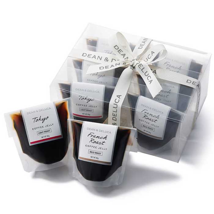 コーヒー好きには、異なるローストで仕上げたコーヒーゼリーのアソートも◎。