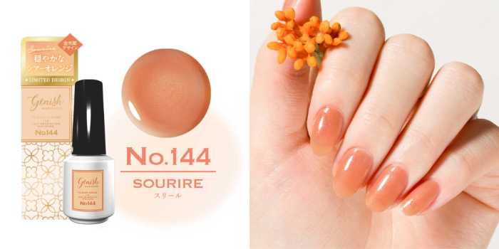 今回の限定コレクションは、日本の秋を象徴する花「金木犀」と「銀木犀」に着想を得た2色展開。No.144「スリール」は、繊細なパールが揺らめくシアーなオレンジ。