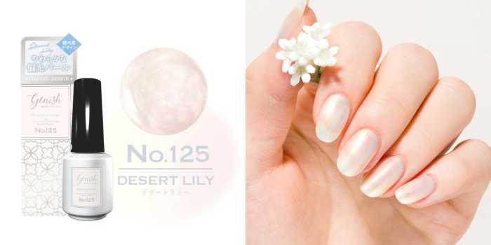 そしてNo.125「デザートリリー」は、じゅわっとした血色感を感じる偏光パール。銀木犀のような上品な輝きが指先を引き立ててくれます♡