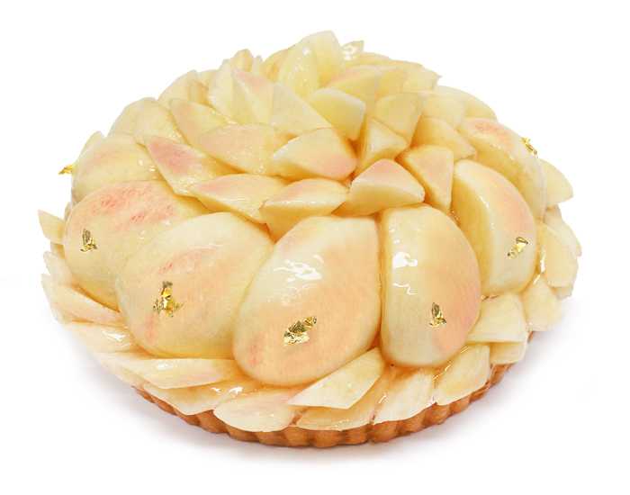 山梨の桃を主役にした3種類の桃ケーキが登場。中でも注目は、芳醇な香りと濃厚な甘みが特徴のブランド桃「ふじやまの彩」を贅沢に使ったアートのような一品。
