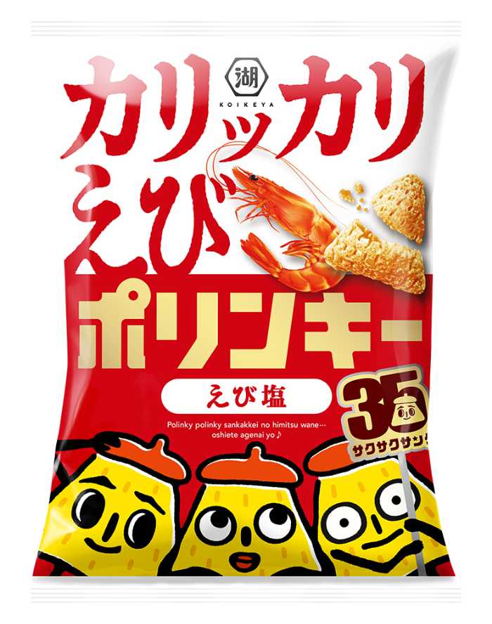 35周年を迎えたポリンキーが贈る、新しいおいしさ「カリッカリえびポリンキー えび塩」。