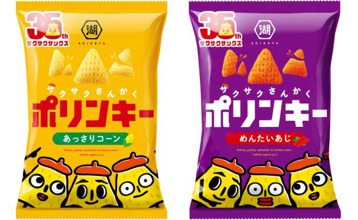 35周年を記念して、定番の「あっさりコーン」と「めんたいあじ」も35周年ロゴ入りにリニューアル!