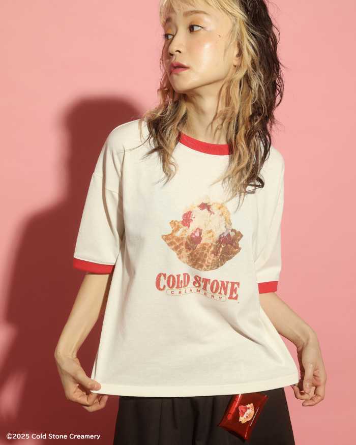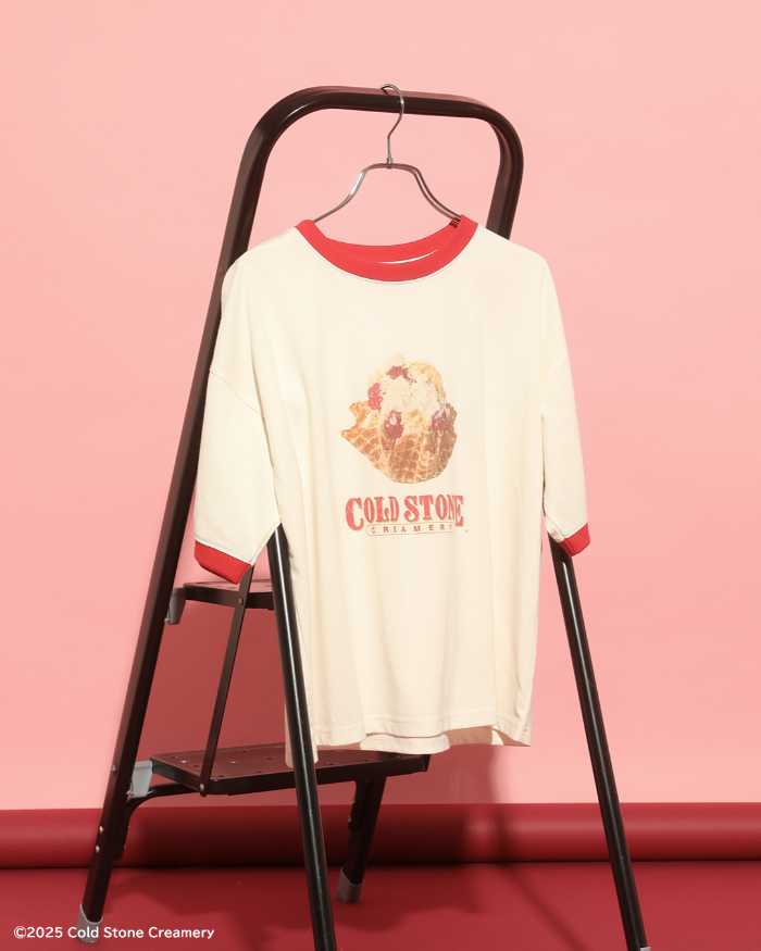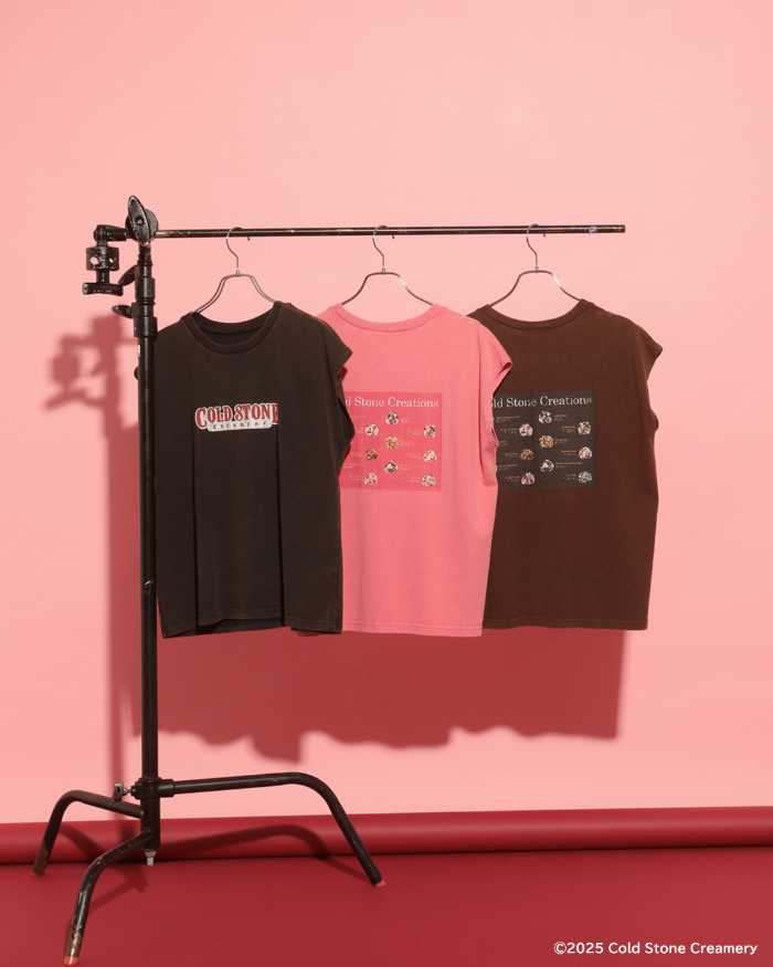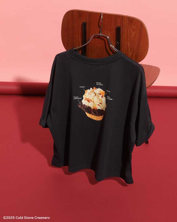 ビッグシルエットやクロップド丈など、トレンド感のあるTシャツやノースリーブには、コールド・ストーンの人気フレーバーやフローズンドリンクがカラフルにプリントされ、まるで着るスイーツ!
