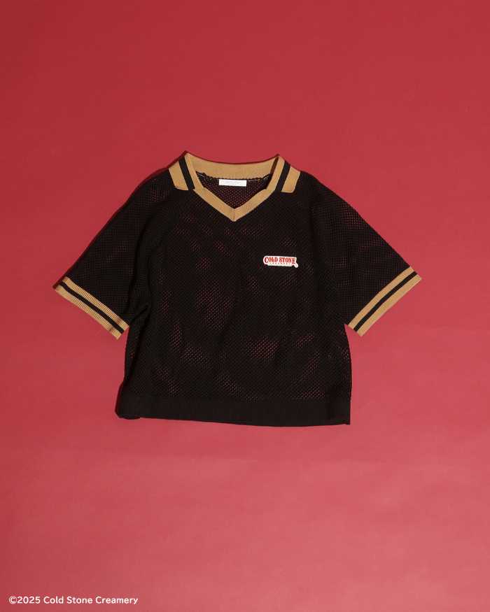 ユニークなのは、まるでショップクルーの制服のようなメッシュニット♡