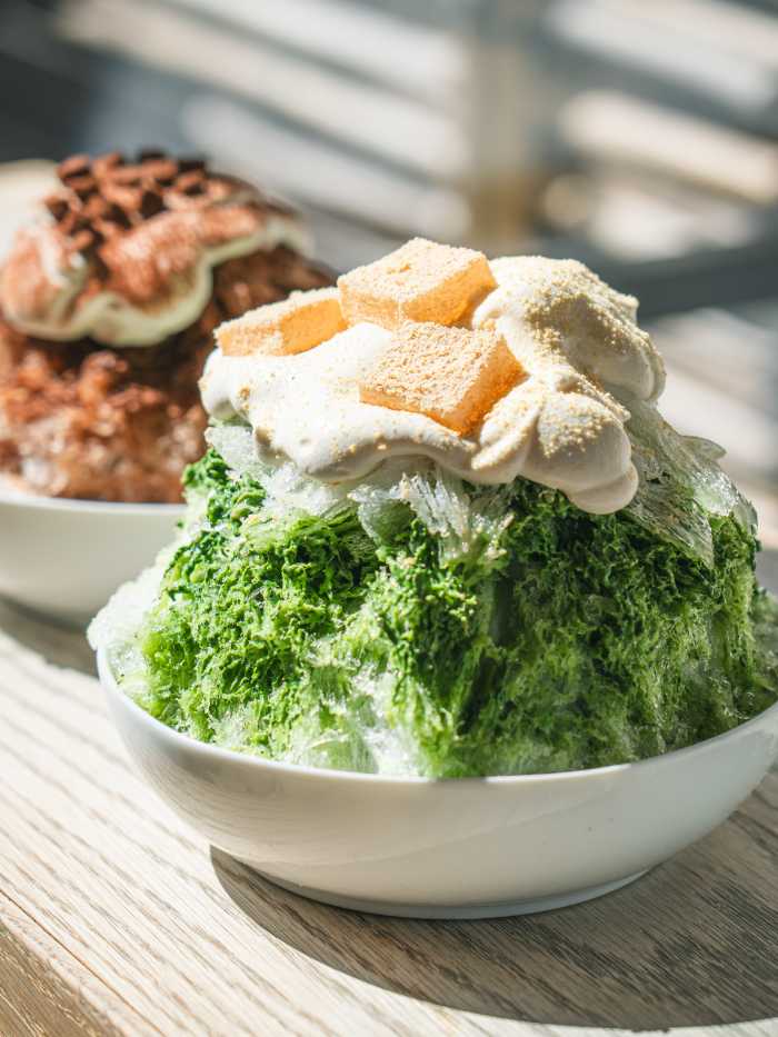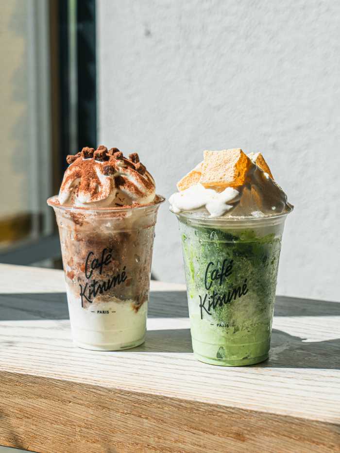 暑さを忘れさせてくれる、Café Kitsunéの夏限定かき氷。ティラミスと抹茶、どちらも個性豊かで贅沢な味わいが詰まった一品です。