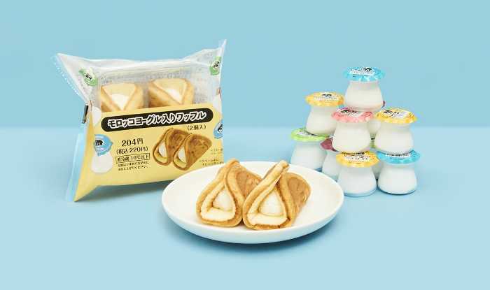 まずご紹介するのは、発売65年を迎えた駄菓子「モロッコヨーグル」を使用した「モロッコヨーグル入りワッフル」。