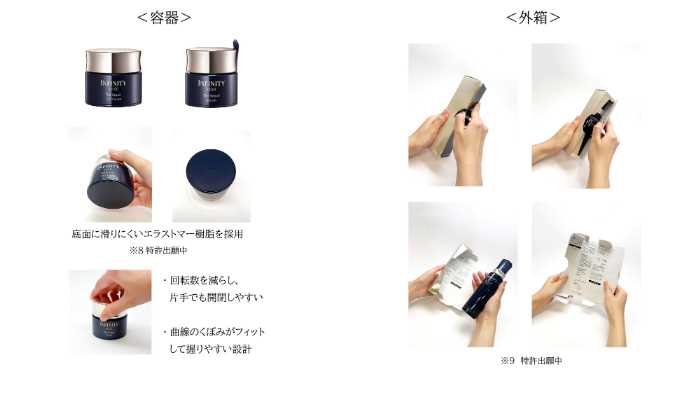 片手でも開閉しやすいエラストマー樹脂、少ない力で開けられるネジキャップ、視認性の高いパッケージなど、細やかな配慮が詰まっています。