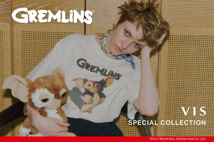 どこか懐かしさを感じさせる『グレムリン』と、今どきカジュアルを得意とするVISのタッグだからこそ実現した、大人の女性にぴったりなTシャツコレクション。
