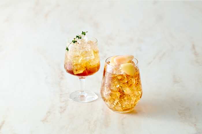 白桃ソース×アールグレイシロップの「ピーチティーソーダ」(税込825円)や、ベルガモット香る「ベルガモットピーチティー」(税込825円)は、ドリンクセットにすると550円とお得に楽しめます。
