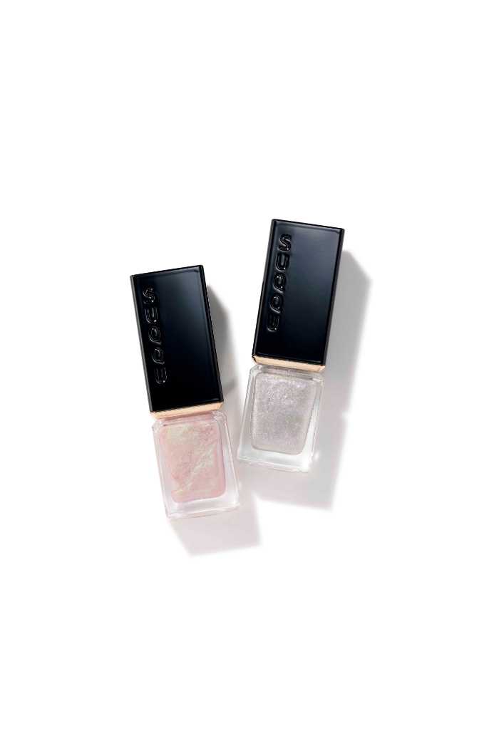 今回の秋コレクションでは、指先にも“彩重ね”を楽しめる限定ネイルポリッシュが登場。カラーは、2種類。101「極光重」はオーロラのように色が揺らめき、102「輝重」はホログラムのような煌めきが特徴です。