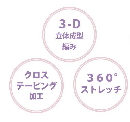「SHAPE IT!」の最大の特長は、360°ストレッチ素材による快適な着心地。3D立体成型編みで体の曲線に自然にフィットし、段階式着圧とテーピング加工が気になる部位をしっかりサポート。