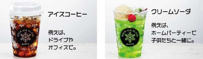 ロックアイスがたっぷり詰まったグラスタイプで、好きなドリンクを注ぐだけでひんやりリフレッシュ。