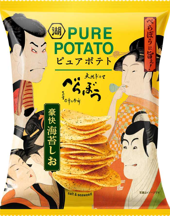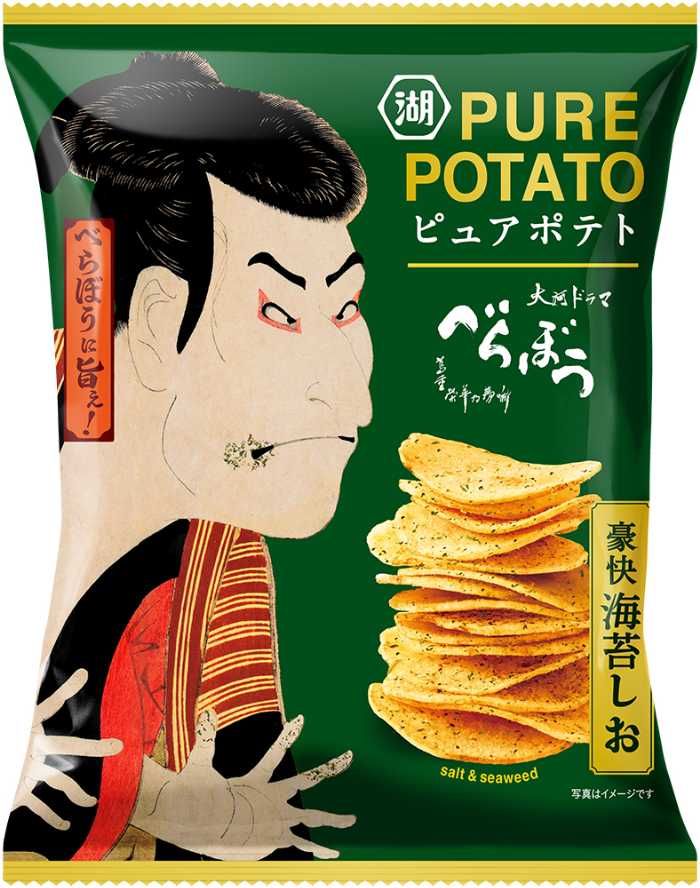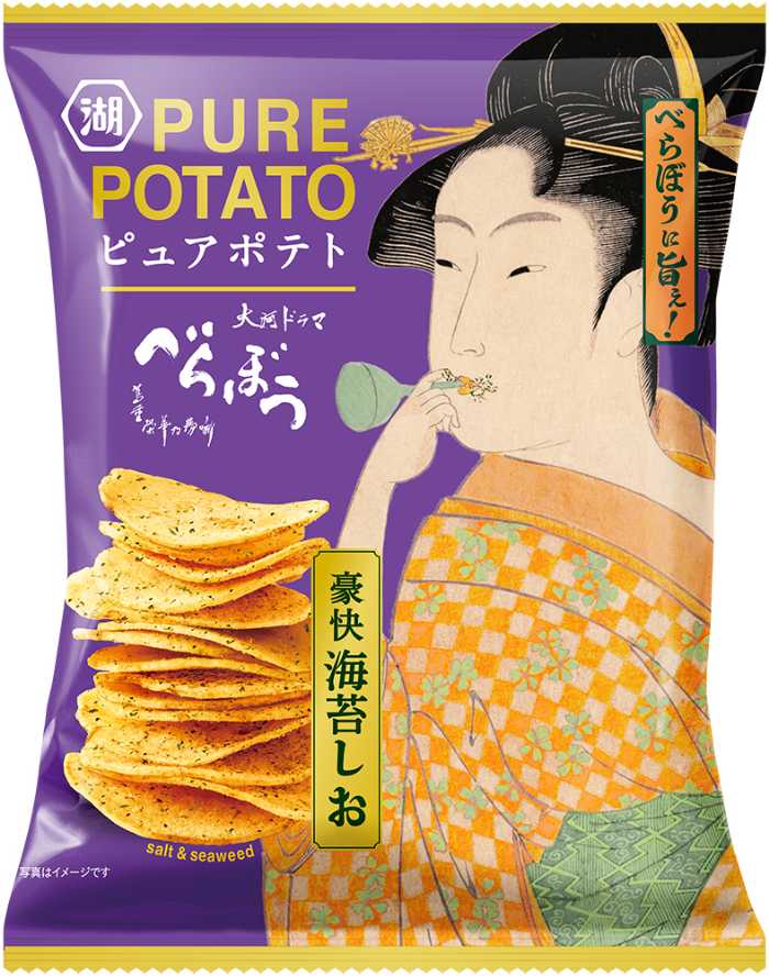 「ピュアポテト 豪快海苔しお」は、蔦谷重三郎が活躍した江戸時代を彷彿とさせる、豪快な海苔の香りが魅力。