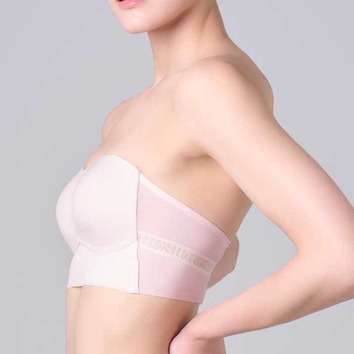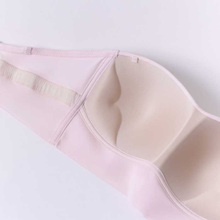 お洋服に響きにくいシームレスカップと、ヘルシーなネックラインで洗練された印象に。カップ脇にはリップ型のプッシュアップパッドを忍ばせて、見えない部分にも大人の遊び心を。