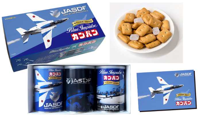 心ときめく♡ブルーインパルス仕様の源氏パイ&缶カンパン登場