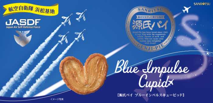ブルーインパルスのアクロバット飛行「バーティカルキューピッド」からインスパイアされた「源氏パイ ブルーインパルス キューピッド」。