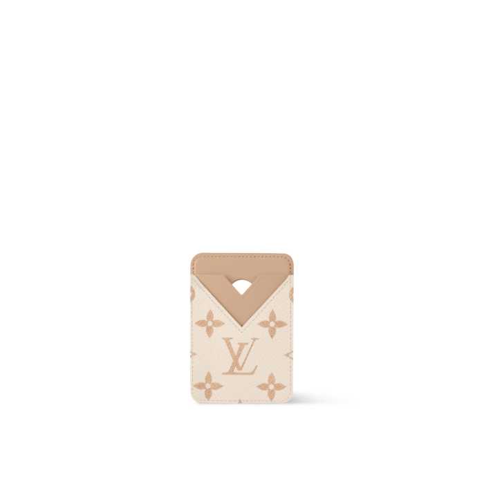 モノグラム・キャンバスに、アイコニックな「V」シェイプの2つのカードスロットがデザインされ、スマートな印象に。