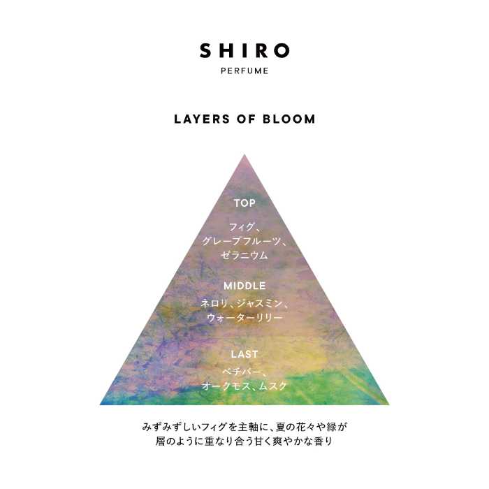2025年7月からは、SHIRO PERFUMEに7種の新しい香りが加わり、香りのチャート図もリニューアル。「LAYERS OF BLOOM」は「SUNNY MORNING」や「PARISIAN SHIRT」がお好きな方にもおすすめ。
