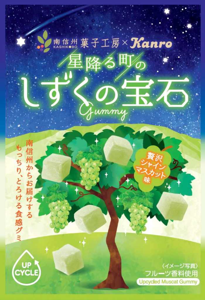 自然からの贈り物を、美味しく、そして地球にやさしく♡カンロが手がける「しずくの宝石グミ」シリーズに、シャインマスカット味が新登場。ドライフルーツの製造過程で生まれる濃密なシロップをアップサイクルし、もっちりとした食感とリッチな味わいに仕上げた新感覚グミです。パッケージには南信州の自然を描き、見た目からも癒される1品。全国のセブン-イレブンで、7月15日(火)より先行販売スタートです♪