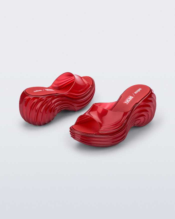 それぞれのシューズに、MELISSAならではの素材とDIESELの“D”モチーフが際立ち、未来的なルックを叶えてくれます。どれもトランスペアレント・ブルー、トランスペアレント・レッド、ブラックの3色展開。