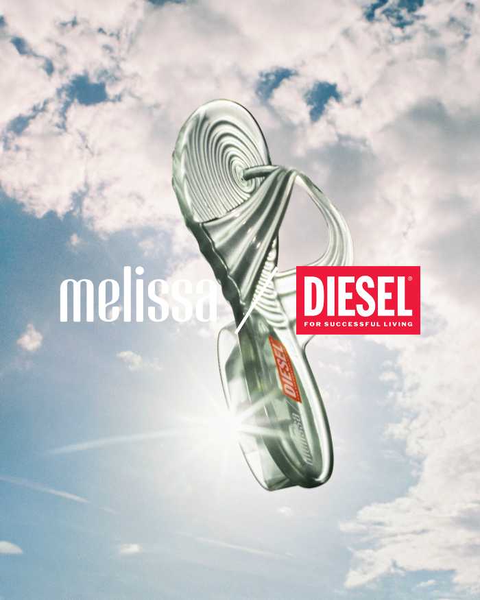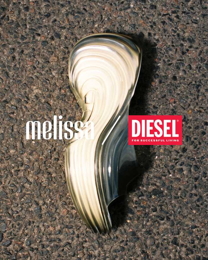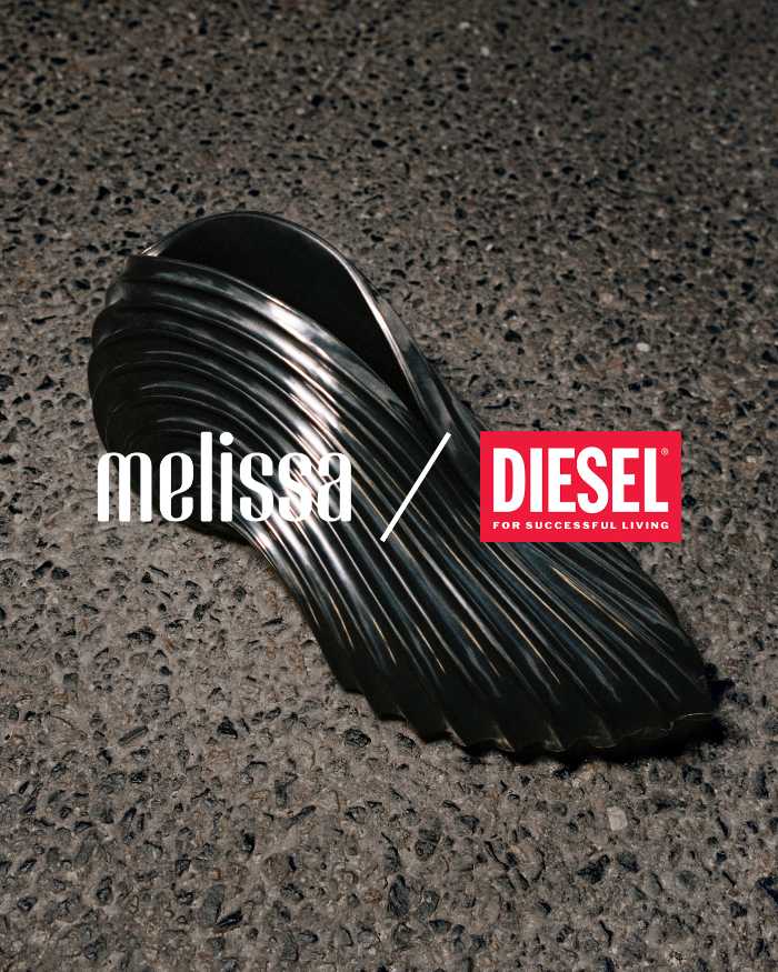 Melissa × DIESEL コラボアイテムは、2025年7月15日より両ブランドの公式オンラインストアおよび一部店舗にて販売開始。