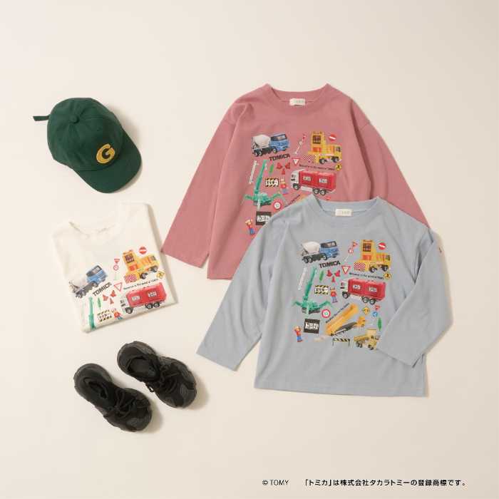 毎日を思いっきり遊びたいキッズにぴったり♡「ビールーム」から、男の子に人気の「トミカ」とのスペシャルコラボTシャツが新登場!注目は、働く車を大胆にプリントした2種類の長袖Tシャツ。どちらも「吸水速乾」「UVカット」「型崩れ防止」など、ママにもうれしい機能満載の“カイテキ天竺”素材を使用。遊びにもおしゃれにも頼れる一枚、要チェックです♪
