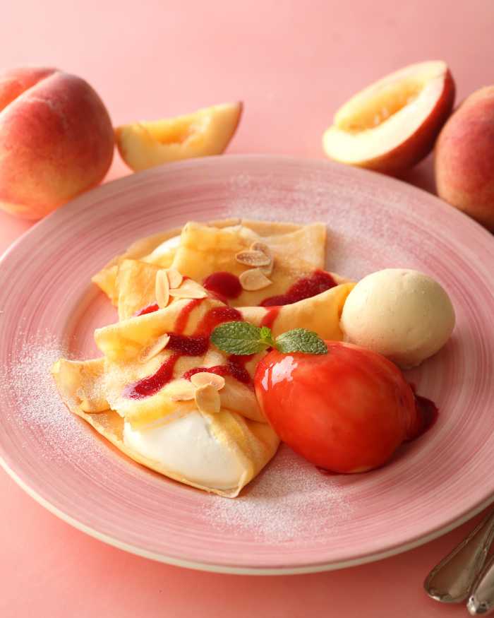 白桃パフェやクレープ、白桃パイにアフタヌーンティーまで、旬の桃を贅沢に楽しめるメニューが盛りだくさんです♡