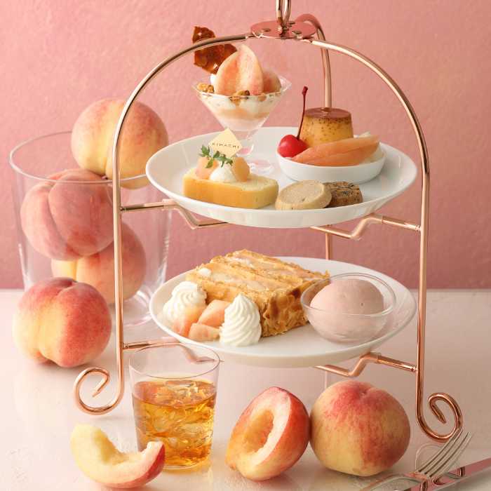 「季節のAfternoon Tea Set」では、白桃のミニパフェやプリン・ア・ラ・モード、チーズケーキなど、桃を存分に楽しめるメニューが揃います。