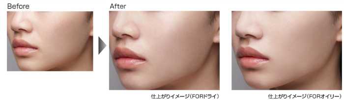 乾燥肌にはぷるんと包み込む保湿感、混合肌にはさらっとフィットする軽さ、脂性肌にはサラサラ仕上げの皮脂ブロック機能がそれぞれ備わっています。