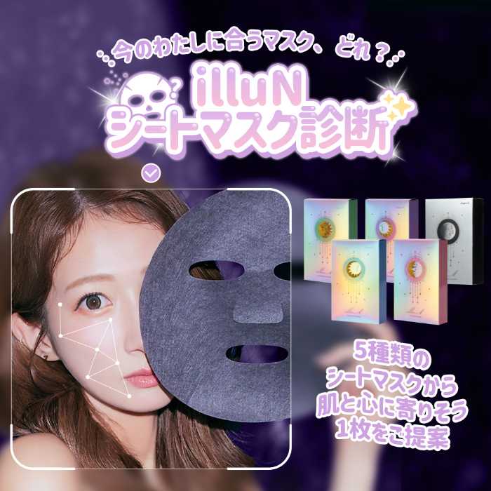 illuN公式オンラインストアでは、5種のシートマスクから最適な1枚を提案する「シートマスク診断」を展開中。