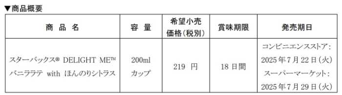 「スターバックス® DELIGHT ME™ バニララテ with ほんのりシトラス」は、2025年7月22日(火)より全国のコンビニで先行発売。