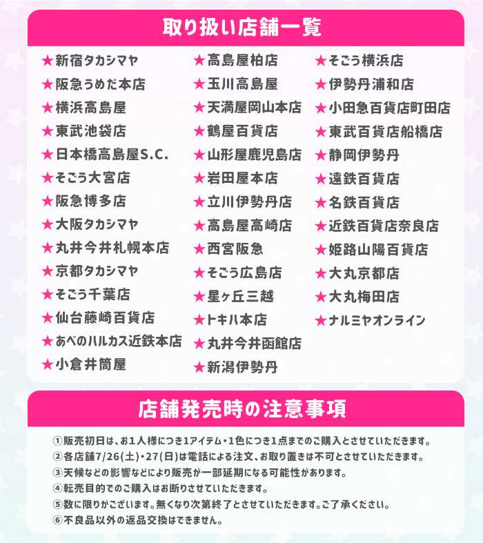 再販売は2025年7月26日(土)からスタート。12:00よりナルミヤオンラインでの販売も開始され、全国の百貨店でも取り扱いがスタートします(一部店舗を除く)。