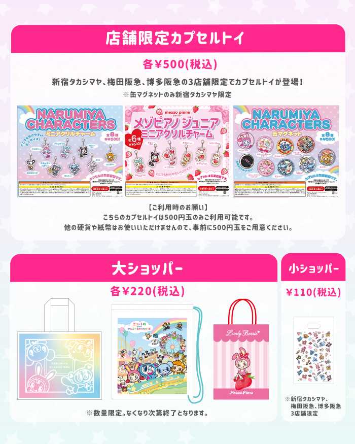 対象商品は、「ナルミヤキャラクターズ POP UP SHOP」と「Berrie’s Strawberry House POP UP SHOP」で話題となった限定アイテムたち。