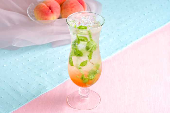 さらに、ミントを加えた「ピーチミントスカッシュ」は、ひんやり感がアップしリフレッシュにぴったりな1杯。お料理とのセットや、カフェタイムのお供にもおすすめです。