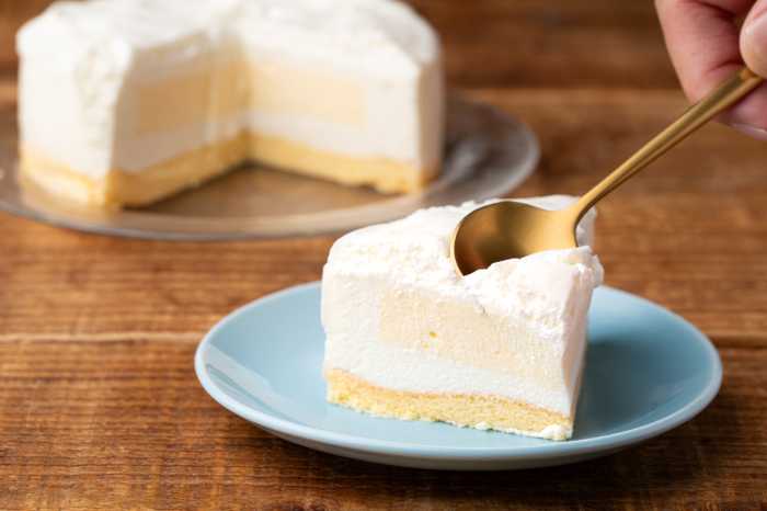 ふわふわの特製練乳生クリームと、なめらかな塩ミルクムースの2層構造がたまらない♡