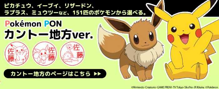 「Pokémon PON」は、初代のカントー地方からイッシュ地方まで、なんと全649匹のポケモンから好きなキャラを選べるオーダーメイドはんこ。