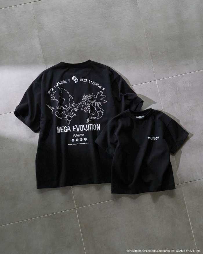 UNITED TOKYOからは、ヴィンテージライクなバンドT風デザイン。トレンド感のあるウォッシュ加工のブラック地に、描き下ろしのメガリザードンX・Yを大胆にプリント。
