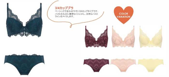 どのデザインもカラーバリエーションが豊富で、カラーによってまったく異なる印象を演出できるのも嬉しいポイント。毎日のコーディネートに合わせてランジェリーも楽しめそうです♪