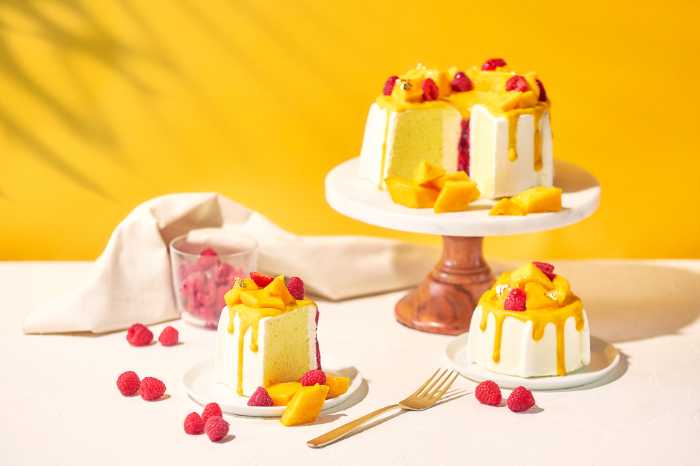 完熟マンゴーの濃厚な甘み、ふわっと軽やかなシフォン、そしてラズベリーやエディブルフラワーの彩りが美しく調和した、夏限定の特別なシフォンケーキ。