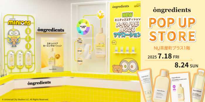 ツヤ肌を叶えるongredientsの人気スキンケアアイテムが、実際に試せる特別なPOP UPストア。大阪・NU茶屋町プラスでの期間限定開催だからこそ楽しめる、ミニオンズのキュートな限定特典も盛りだくさん。