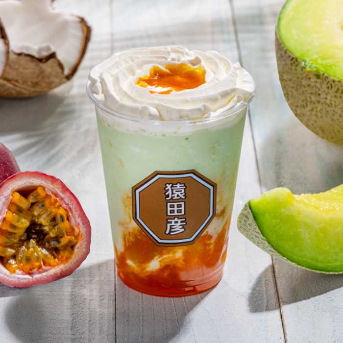 完熟メロンの甘さにパッションフルーツの爽やかな酸味、そしてココナッツのまろやかなコクをプラスした「情熱パッションメロンのフラッペ」。